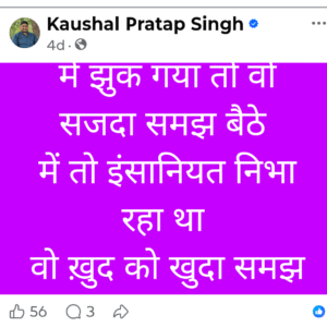 आगरा भाजपा संगठन में अंदरूनी खींचतान एक बार फिर खुलकर सामने आ गई है। अछनेरा देहात के मंडल अध्यक्ष कौशल प्रताप सिंह ने फेसबुक पर ऐसा पोस्ट कर दिया जिससे राजनीतिक गलियारों में हलचल मच गई। पोस्ट में उन्होंने सीधे जिलाध्यक्ष प्रशांत पोनिया पर गंभीर आरोप लगाते हुए लिखा कि यदि उन्हें कुछ होता है, तो उसके जिम्मेदार जिलाध्यक्ष होंगे। पोस्ट वायरल होते ही पार्टी कार्यकर्ताओं में चर्चा तेज हो गई। बाद में उन्होंने पोस्ट डिलीट कर दिया, लेकिन तब तक स्क्रीनशॉट सोशल मीडिया पर फैल चुके थे।
